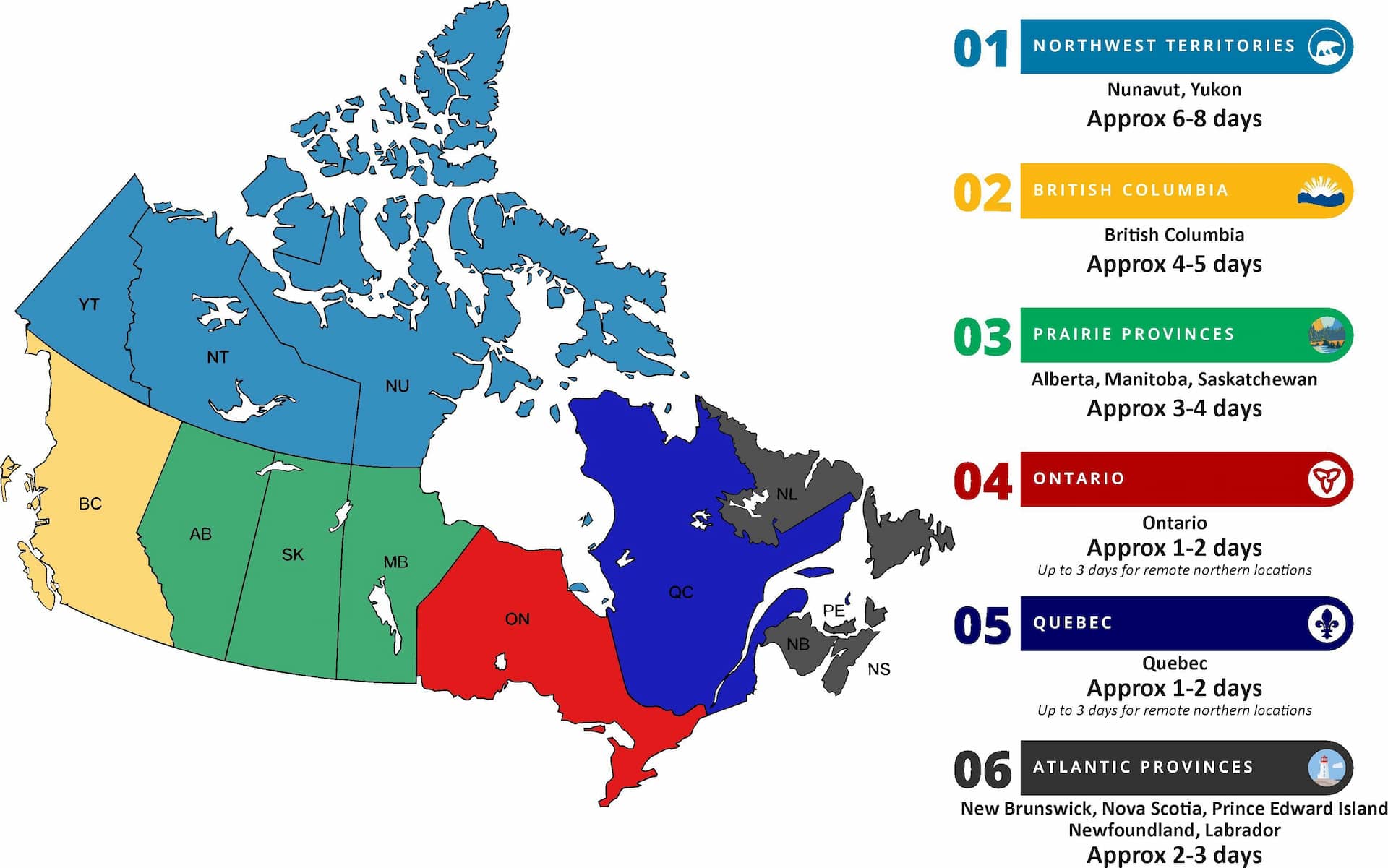 Cliquez sur la carte pour voir les délais de livraison détaillés |